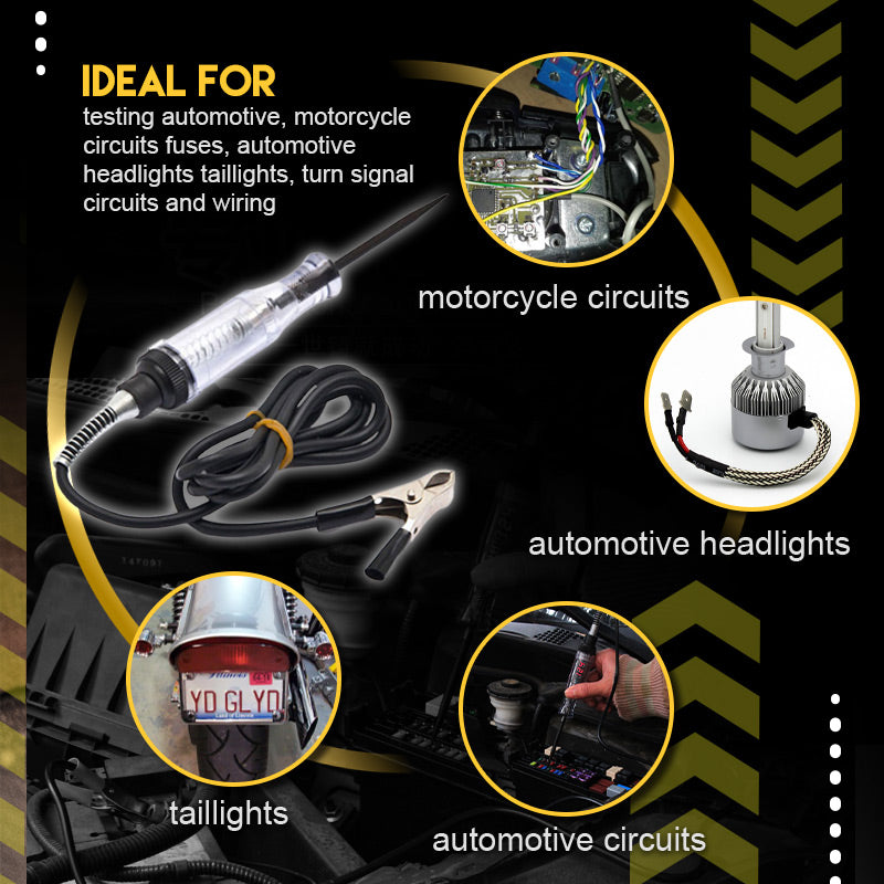 - Оборудване, което се използва широко за тестване на вериги в диапазона 3-24V. Идеално за тестване на вериги, предпазители, фарове, стопове, вериги на мигачи и окабеляване в автомобили и мотоциклети.