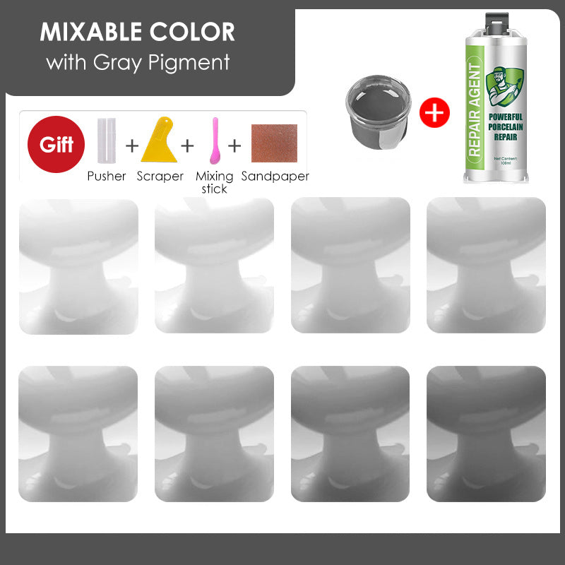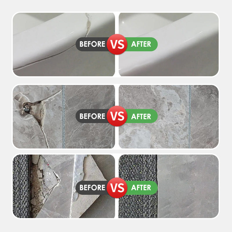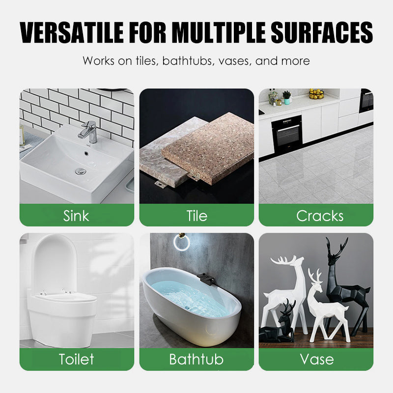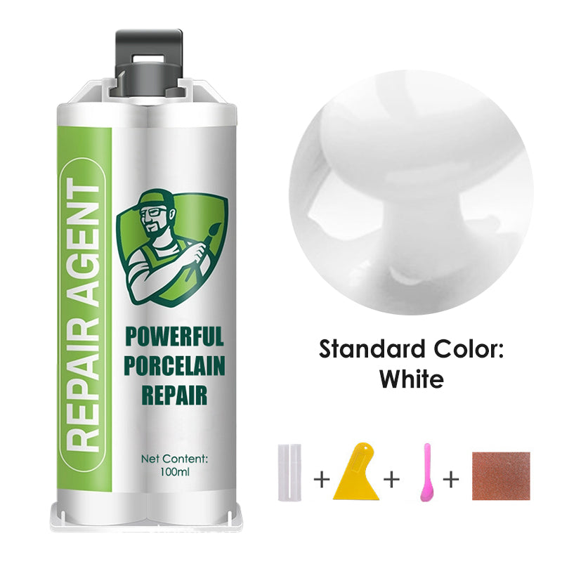 ПОПРАВЕТЕ ВСИЧКО – Пукнати плочки? Повредени вани? Чипнати вази? Този ремонтен агент работи върху всички тях. Подходящ е за керамика, порцелан и други, осигурявайки решение за всички ваши домашни ремонти. Не изхвърляйте счупените предмети – просто ги поправете лесно и спестете пари.