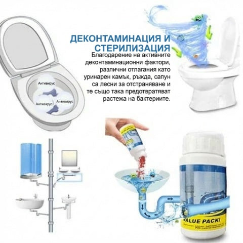 Лесна употреба: изсипете праха за незабавно образуване на пяна, без да използвате тоалетна четка или да избърсвате.