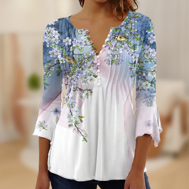 ФЛОРАЛЕН ПРИНТ – Насладете се на непринудена елегантност. Мекият флорален принт придава свеж, романтичен чар на гардероба ви. Независимо дали се обличате за небрежна разходка или за брънч, деликатният принт добавя нотка на сезонен стил, без да претоварва визията ви. Дизайнът е създаден, за да подхожда на всички възрасти и тонове на кожата с дискретна красота