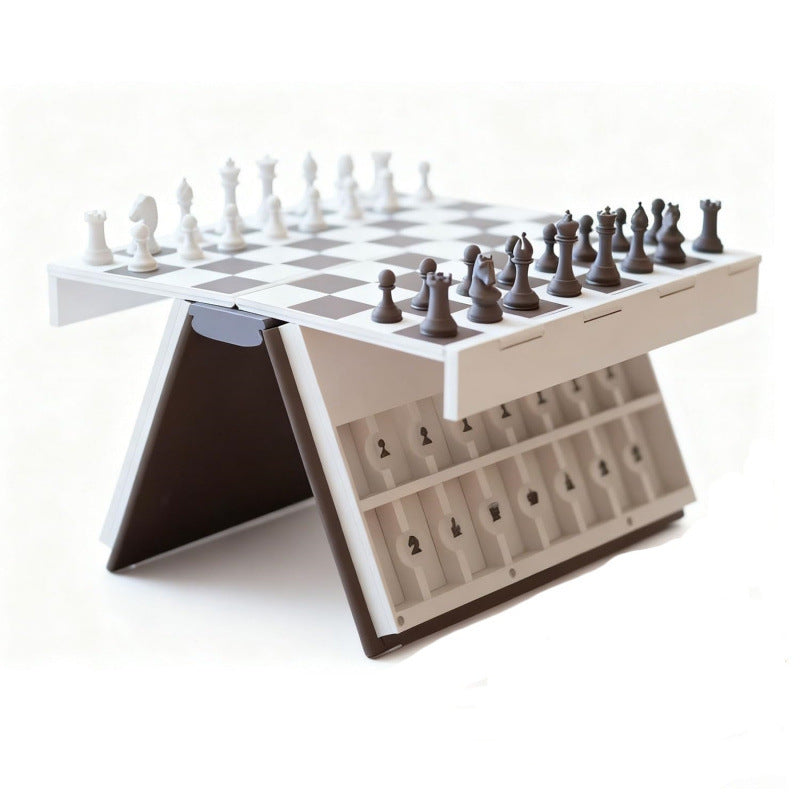 Не се изисква сложно сглобяване. Просто разгънете напълно шахматната дъска, за да я превърнете в стабилна игрална повърхност. Вертикалният дизайн не само спестява ценно място на масата, но и се отличава с ергономична структура, осигуряваща на двамата играчи ясен и удобен изглед към дъската и оптимален ъгъл на игра.