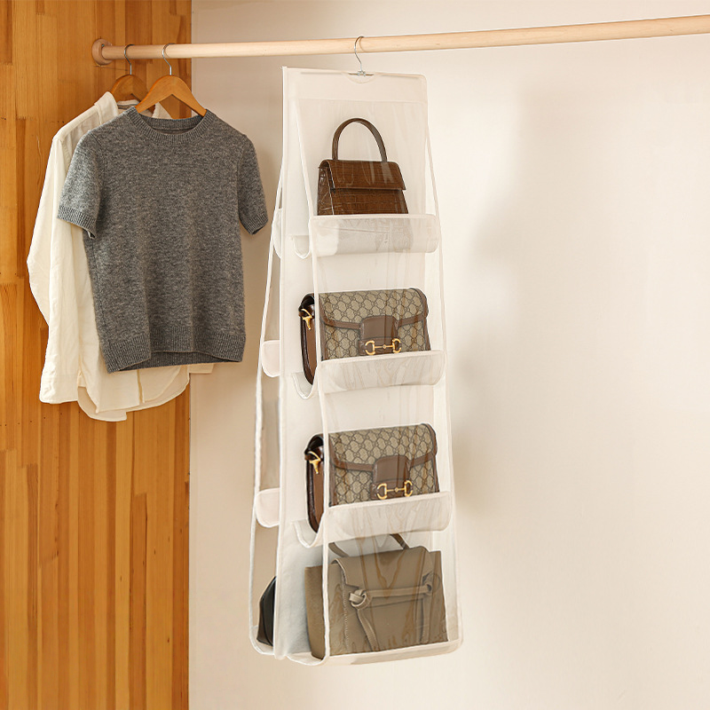 Висящата чанта за прах е идеално решение за съхранение във всеки дом или офис. Органайзерът е прозрачен, така че лесно и бързо можете да намерите това, от което се нуждаете. Сгъваемият дизайн осигурява лесно съхранение и транспортиране, когато не се използва. Може да се закачи навсякъде с металната си кука, а двустранният му дизайн предлага практични размери и джобове. Устойчивият му материал гарантира, че органайзерът ще ви служи дълги години. С 6 или 8 големи джоба можете лесно да съхранявате и подреждате всичките си вещи. Това е чудесен начин да поддържате пространството си подредено и организирано.