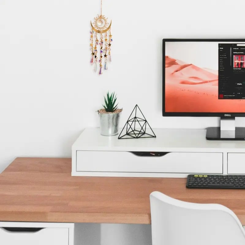 🌈Създател на дъга: Слънчевият ловец представлява лъскава метална рамка с шарки на слънце, луна и звезди. Изкуствените кристали и висулки улавят слънчевата светлина, създавайки ефекта на мечтаната светлинна сянка. lУникалният дизайн, фината изработка и силните декоративни качества го превръщат в завладяващо произведение на изкуството.