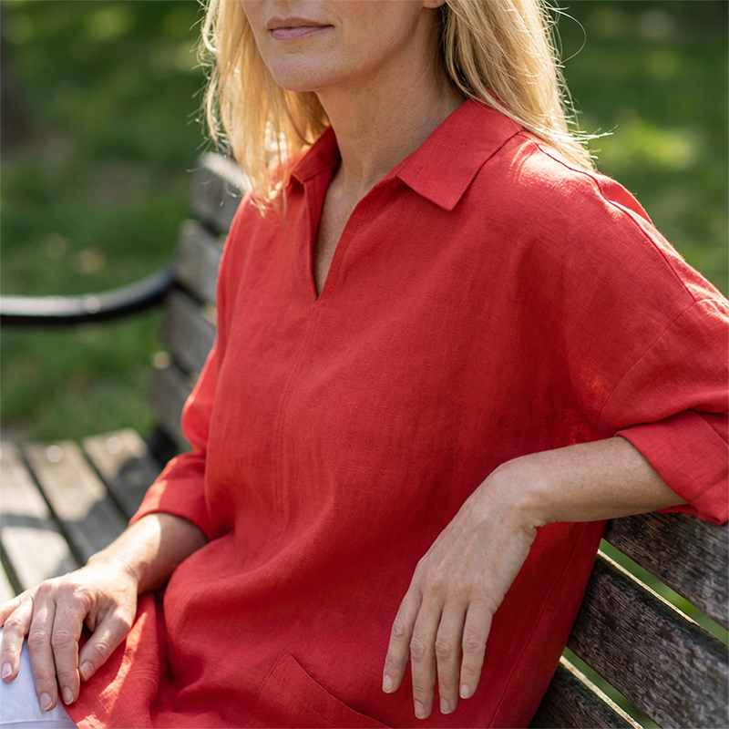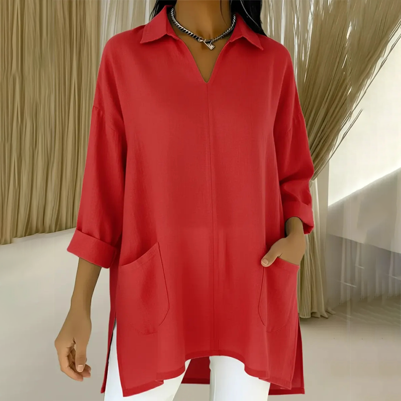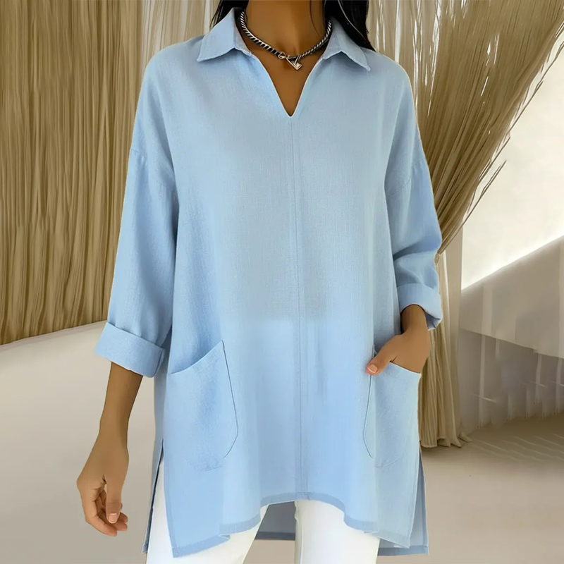 Включено: 1 * Дамска туника с V-образно деколте и яка, с джобове