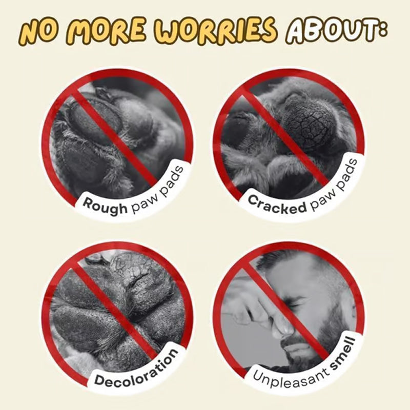СБОГУВАЙТЕ СЕ С ПРОБЛЕМИТЕ С ЛАПИТЕ: Грубите възглавнички, напукана кожа и неприятни миризми вече са минало! Този стик за мазане решава тези проблеми, успокоява и овлажнява лапите на вашия любимец, за да бъдат възможно най-удобни.