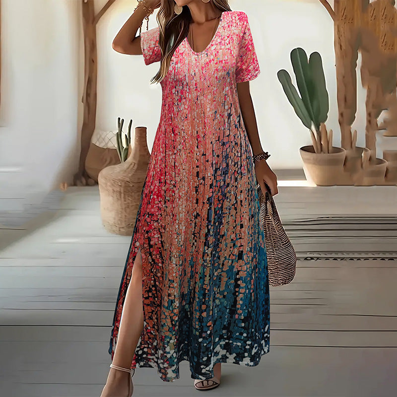 Зашеметяващ флорален печат: Подобрете стила си с нашия привличащ вниманието флорален дизайн. Всяка рокля има ярък, детайлен модел, който добавя елегантност към ежедневния ви гардероб. Перфектна за тези, които искат да се открояват, но същевременно да се чувстват удобно.