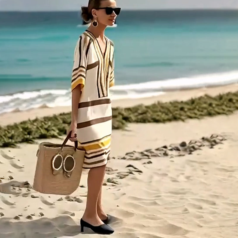 Пакетът съдържа 1 × дамска раирана рокля с V-образно деколте