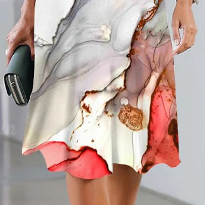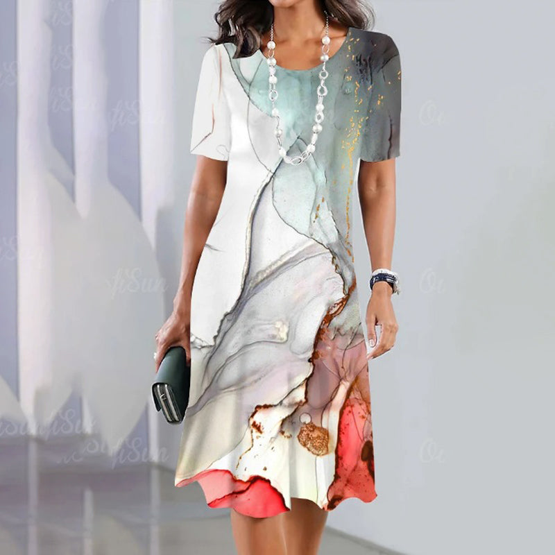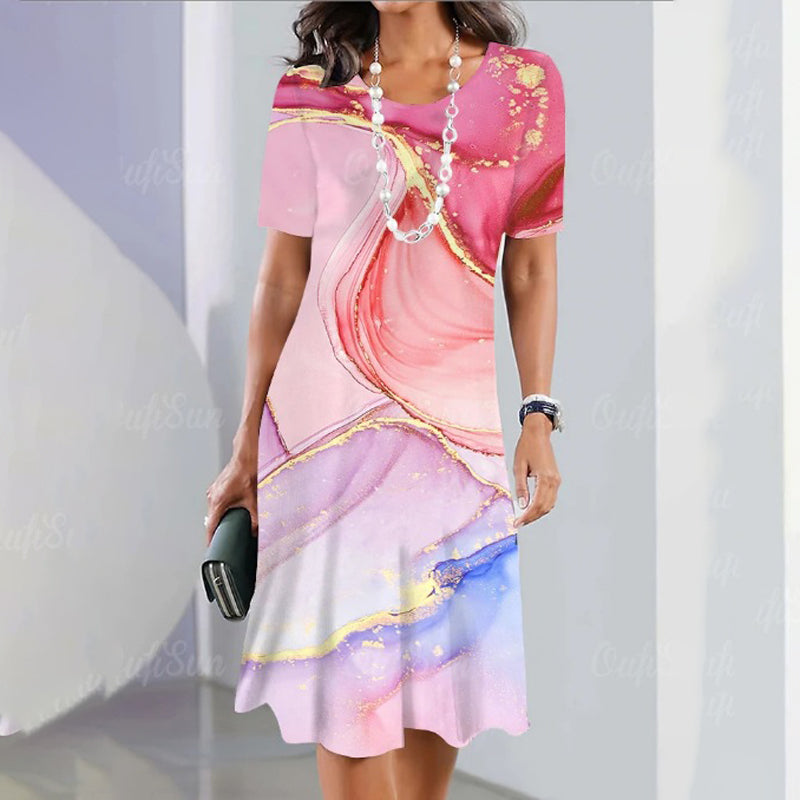 Привличащ вниманието дизайн на щампата: Подобрете стила си с тази рокля със смел, ярък дизайн на щампата, която е модерна и елегантна и е идеална за всекидневна разходка или полуофициално събитие.
